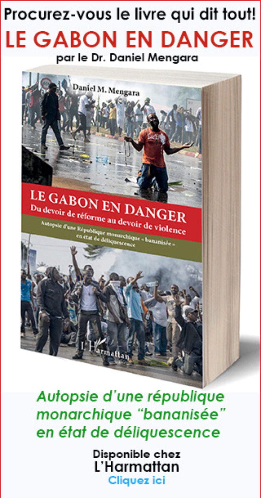 Félicité VINCENT Journaliste et Fondatrice de RadioTamTam, déclare que Le Gabon en danger - Du devoir de réforme au devoir de violence - Autopsie d'une République monarchique "bananisée" en état de déliquescence « est un livre indispensable, et exhorte tous les partisans de Daniel Mengara au Gabon et partout dans le monde à acheter le livre. »