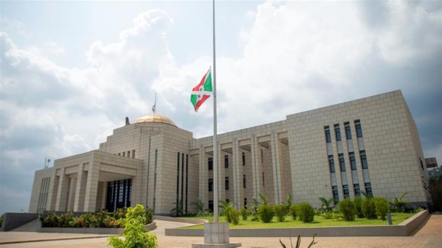 Le drapeau national burundais flotte en berne à l'extérieur du bâtiment de la State House après la mort de Nkurunziza [Reuters]