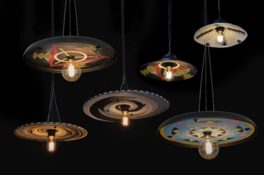 Une nouvelle ligne d'éclairage présente une nouvelle approche d'une tradition zouloue de tissage avec du fil téléphonique. Nommée d'après le maître tisserand Alfred Ntuli, la nouvelle collection de Joburg's Mash T. Design propose une série de luminaires suspendus animés de nuances tissées dans des motifs complexes. Ntuli, qui est connu pour tisser des motifs géométriques avec du fil téléphonique, avait du pain sur la planche car ces objets à grande échelle nécessitaient plus de motifs que son esthétique restreinte habituelle ne le permet.