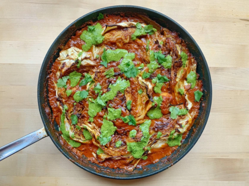 Le plat de chou préféré de mon partenaire et de mon pays à ce jour est un chou braisé peu profond grouillant de cumin, de coriandre et de pâte de tomate qui est ensuite garni d’une cuillerée rafraîchissante de yogourt. Mon ami Andy Baraghani a développé la recette de Bon Appétit il y a des années; Depuis, à la demande de mon partenaire, j’essaie de trouver un plat de chou pour le convaincre.