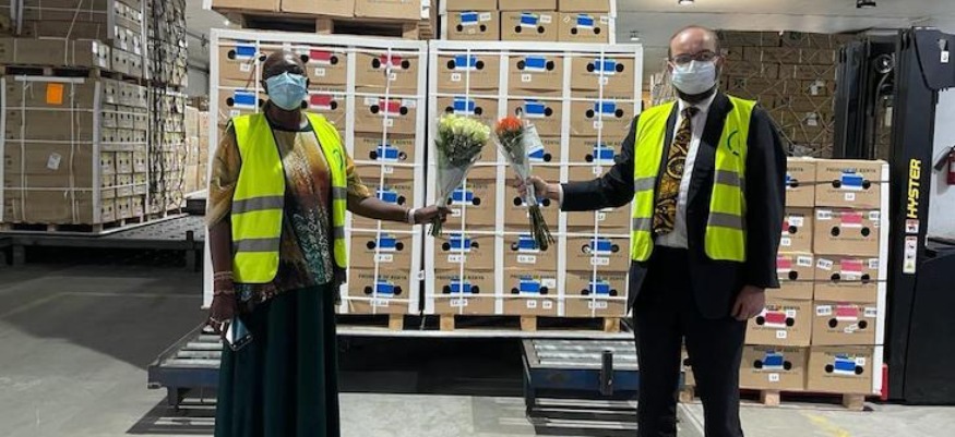 James Duddridge, député, ministre britannique de l’Afrique, et Betty C Maina, secrétaire du Cabinet, Ministère de l’industrialisation, du commerce et du développement des entreprises, Kenya, à Flamingo Horticulture, Nairobi.