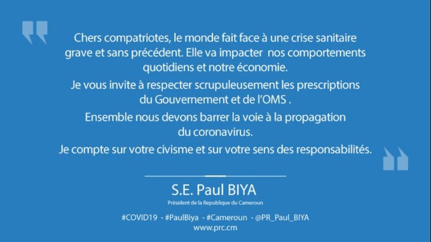 CAMEROUN : Message du président Paul Biya Actualité Afrique 2050 17 mars 2020
