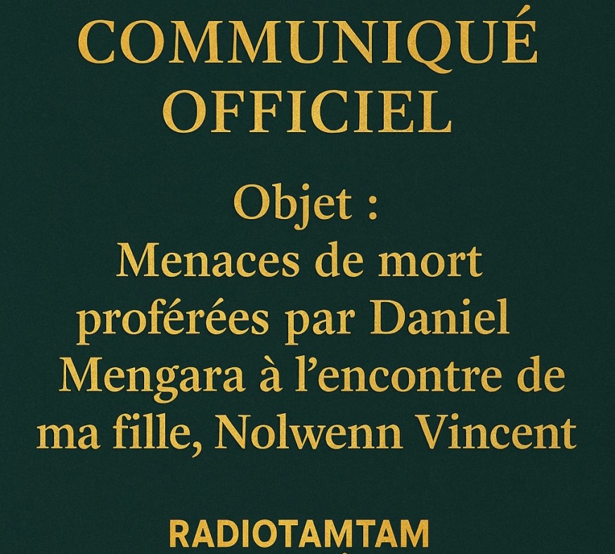 COMMUNIQUÉ OFFICIEL : Menaces de mort proférées par Daniel Mengara à l’encontre de ma fille, Nolwenn Vincent Communiqué 03 octobre 2025