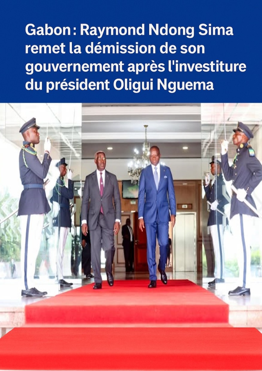 Au lendemain de l’investiture de Brice Clotaire Oligui Nguema comme président de la République, Raymond Ndong Sima a remis la démission de son gouvernement, lui adressant ses « vœux chaleureux de réussite » pour le septennat à venir. Avec l'entrée en vigueur de la nouvelle Constitution, le poste de Premier ministre disparaît, consacrant un régime présidentialiste où l’ensemble du pouvoir exécutif est désormais concentré entre les mains du chef de l’État.