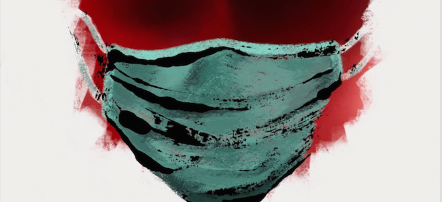 Je voulais parler des violences contre les enfants et les femmes qui ne cessent d’augmenter avec « Masque saignant ». Cette situation est insoutenable, être confiné.e.s avec son agresseur. Tout se passe à l’intérieur des foyers, ce virus qui perdure et que l’on ne combat pas ou trop peu, que l’on peut entendre, soupçonner, voir, mais que l’on ne stoppe pas. Un huis-clos massacrant**.