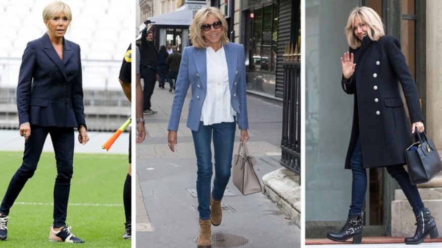 De tous les pantalons, c’est le Jean slim que Brigitte Macron préfère. Qu’il soit délavé ou brut, porté avec une veste blazer ou un pull en maille fine, ce denim s’accorde toutes les faveurs de la Première dame pour parfaire ses looks casual et tendance.