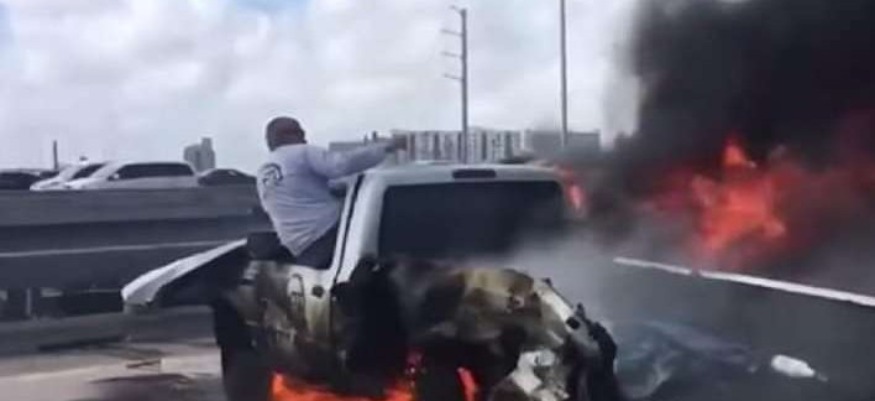Le mois dernier, cette vidéo a fait scandale à Miami, aux États-Unis. Il faut dire qu’elles sont spectaculaires. On y voit un homme essayant de sortir d’une voiture en flammes. Il est au milieu de l’autoroute et a besoin d’aide très rapidement.