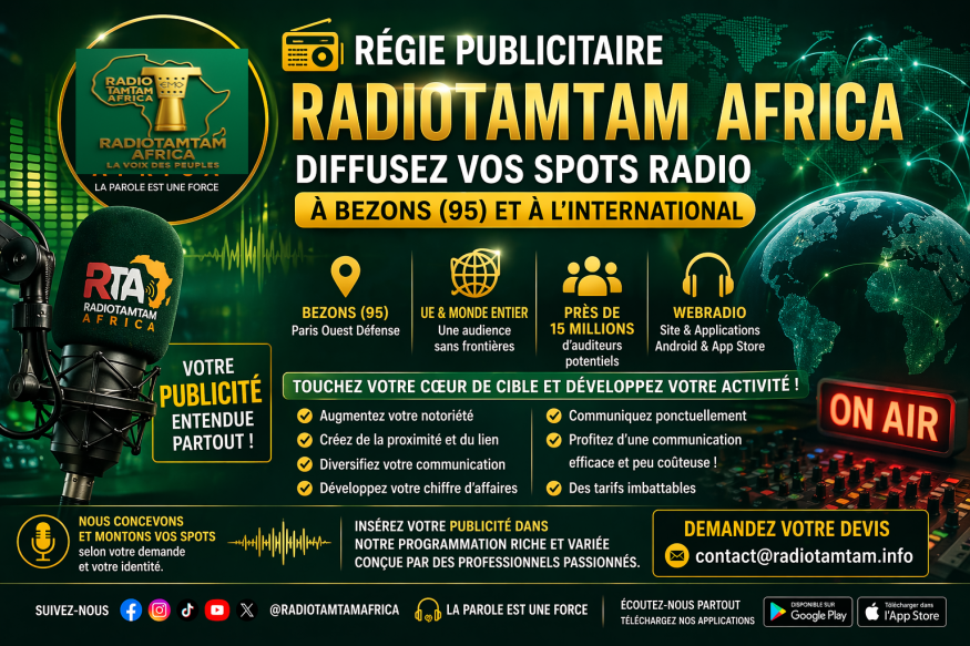 Régie publicitaire RADIOTAMTAM AFRICA : diffusez vos spots radio à Bezons (95) et à l’international Publicité 22 avril 2026