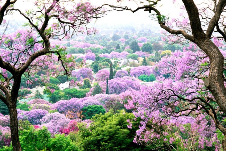 Les jacarandas ne sont peut-être pas indigènes en Afrique du Sud (l'espèce a été introduite du Brésil dans les années 1800), mais les plantes sont devenues quelque peu synonymes des villes de Pretoria et de Johannesburg. Chaque année, de la fin septembre à la mi-novembre, les fleurs sur les arbres prennent vie, drapant des rues entières et des trottoirs dans diverses nuances de violet.