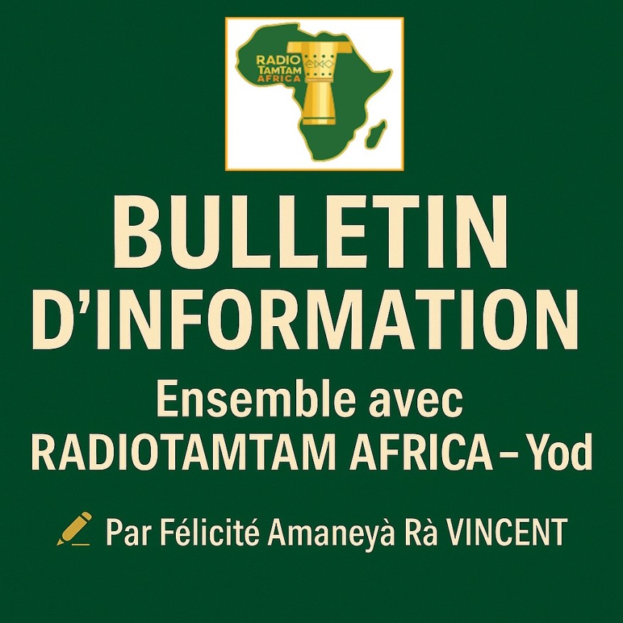 Bienvenue dans votre bulletin d’information quotidien sur RADIOTAMTAM AFRICA, votre espace libre, indépendant et engagé, pour faire entendre la voix des peuples d’Afrique et de sa diaspora.