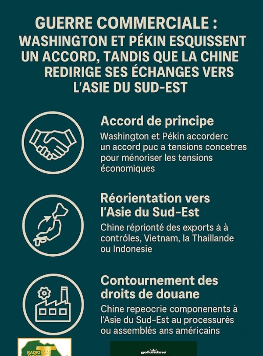 ⚖️ Guerre commerciale : Washington et Pékin esquissent un accord, pendant que la Chine réoriente ses échanges vers l’Asie du Sud-Est Actualité Afrique 2050 11 juin 2025