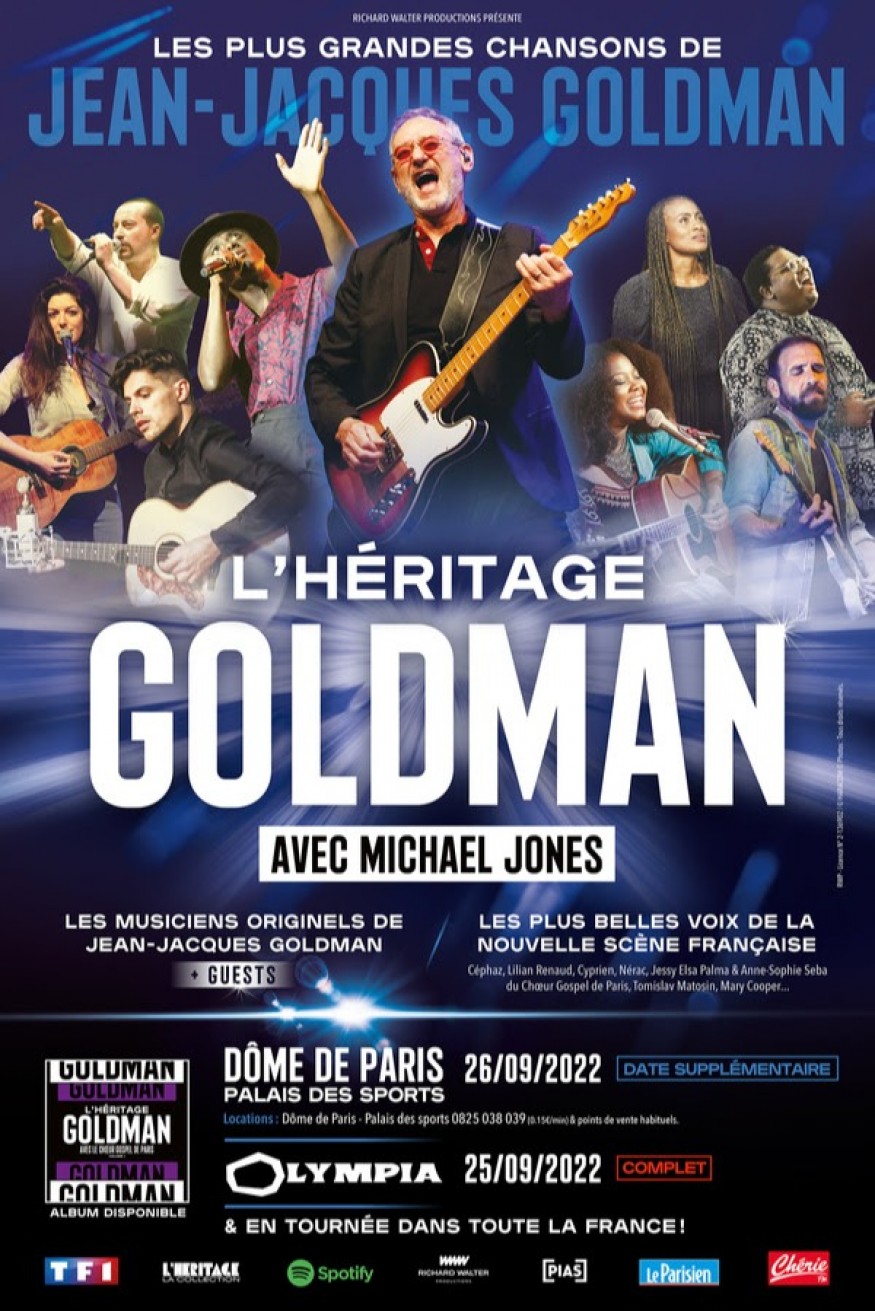 L'héritage Goldman vous attend en tournée dès le 25 septembre 2022 à l'Olympia à Paris, et le 26 septembre 2022 au Dôme de Paris, avec pour les salles parisiennes des guests stars à ne pas rater : Patrica Kaas, Marina Kaye et bien d’autres…